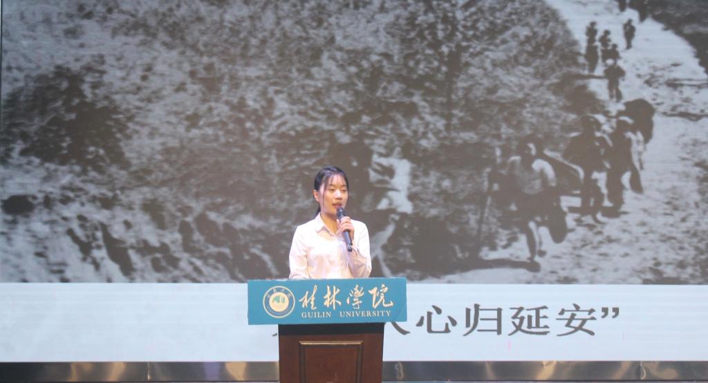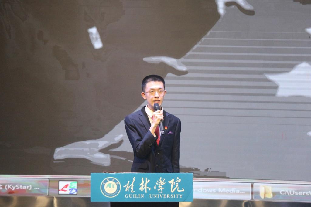 宣讲活动伊始,播放专题视频,让现场嘉宾和同学们了解此次巡回宣讲活动的背景、意义。紧接着,来自桂林理工大学薛淇升同学、桂林旅游学院孟庆舒同学、桂林师范高等专科学校张昊同学分别为我校师生带来了《红岩—狱中的五星红旗》《抗战时期国共的青年争夺战》《青春力量,革命先锋——桂师烈士秦耀文、邓鸾英的故事》的主题宣讲。他们结合党史学习教育与自身实际,以“感党恩听党话,永远跟党走”为主题,真情实意的阐述了他们对知党史、报党恩的理解。三名宣讲同学的主题宣讲内容丰富、思想深刻、重点突出,深深触动了现场的师生。他们以平实的语言、真挚的感情,带领现场的师生们回顾中国共产党百年峥嵘岁月和光辉历史,一个个鼓舞人心的红色故事激励着在场的所有观众,引发强烈共鸣,给大家上了一堂深入人心的党史学习教育大课。