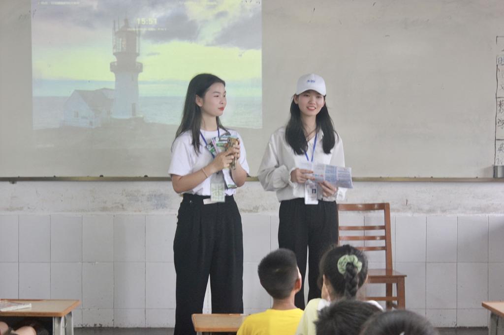 户外夏日炎炎,走过窗边,听着一片朗朗的读书声。在与班级老师交接后,同学们很快就来到了课堂上,在小朋友们好奇的目光下,开始用简单易懂的语言向他们讲解资助政策,同时向家里有大学生的学生家庭分发资助政策宣传单。活动期间,我校向三合中心校的学生代表们分发慰问品。受助学生与三合中心校的学生们在教室交流分享学习、生活等,共同度过了一个愉快的下午。
