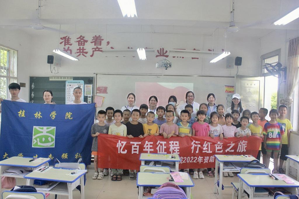 借资助翅膀,乘梦飞翔。为推进资助育人工作,广泛宣传国家资助政策,我校于7月1日下午组织受助学生前往桂林市三合中心校开展了以“忆百年征程,行红色之旅”为主题的资助育人研学活动。此次活动由大学生志强社承办。