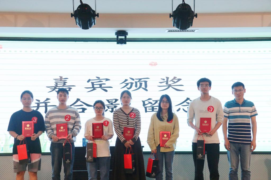 竞赛得到学校师生广泛关注,约600名学生踊跃报名参加。经过初赛的激烈角逐,18名选手晋级决赛。决赛采用现场提问的方式进行,设必答题、抢答题与风险抢答题。选手们默契配合、沉着冷静、自信作答,赛场气氛紧张热烈,赢得现场阵阵掌声。随后的趣味互动环节,观众热情高涨,积极参与,赢取精美礼品。通过激烈的比拼,本次决赛评选出了一等奖3名、二等奖6名、三等奖9名。现场的嘉宾老师为获奖的学生颁发奖品与证书并合影留念。