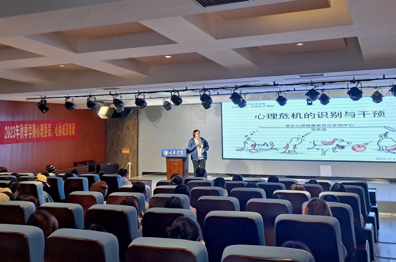 为了提升学生群体对心理危机的识别与干预能力,培养学生助人自助的优秀品质,2023年11月17日学生心理健康教育与咨询中心开展心理危机的识别与干预主题讲座。培训对象为2023级各班级心理委员与大学生心理健康协会全体会干,主讲老师为张紫晨。