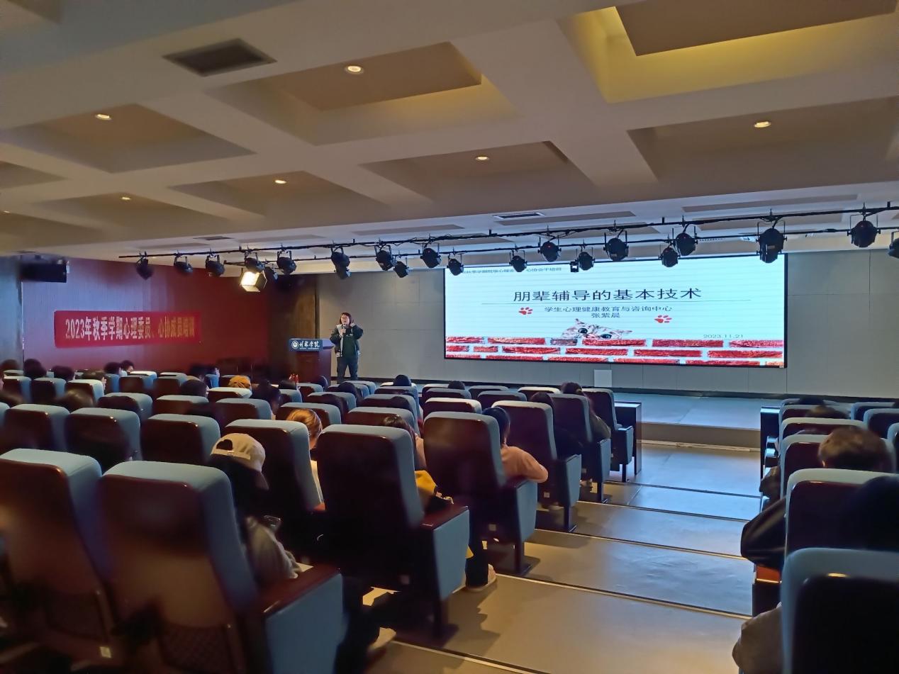 为普及朋辈心理辅导知识,提升大学生助人自助的能力,2023年11月21日,我校学生心理健康教育与咨询中心组织开展了2023年秋季学期班级心理委员培训第二场——《朋辈辅导的基本技巧》主题讲座。培训对象为2023级各班级心理委员及心协会干,主讲老师为学生心理健康教育与咨询中心专职教师张紫晨。