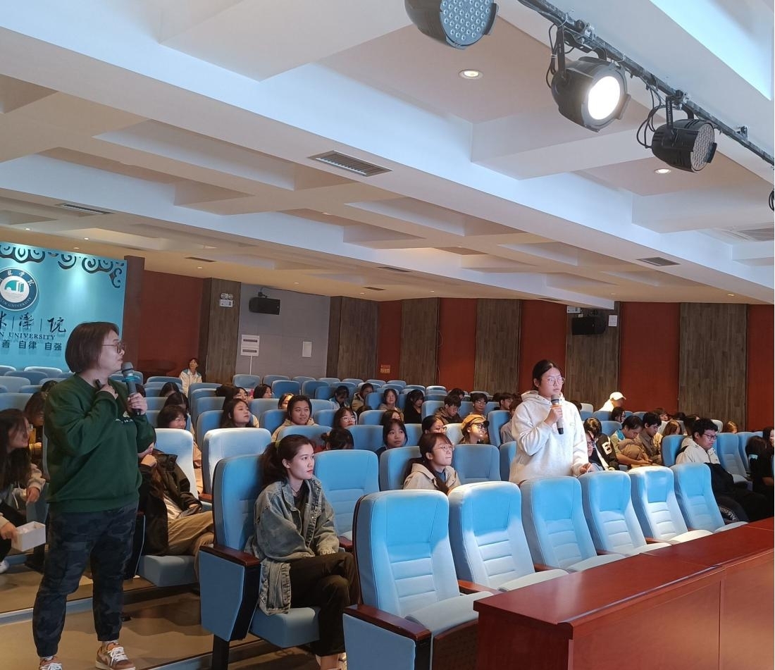 本次讲座包括了“朋辈辅导的定义与原则”“朋辈辅导中的提问技术”以及“朋辈辅导中的倾听技术”三个部分的内容。同学们积极地参与互动,踊跃地回答问题。老师与心理委员以角色扮演的方式,一同模拟并演练了朋辈辅导的过程,着眼于“如何使用开放式问题提问”及“如何共情和倾听”,让在场心理委员切身感受到朋辈辅导技能的巧妙,增强运用能力。