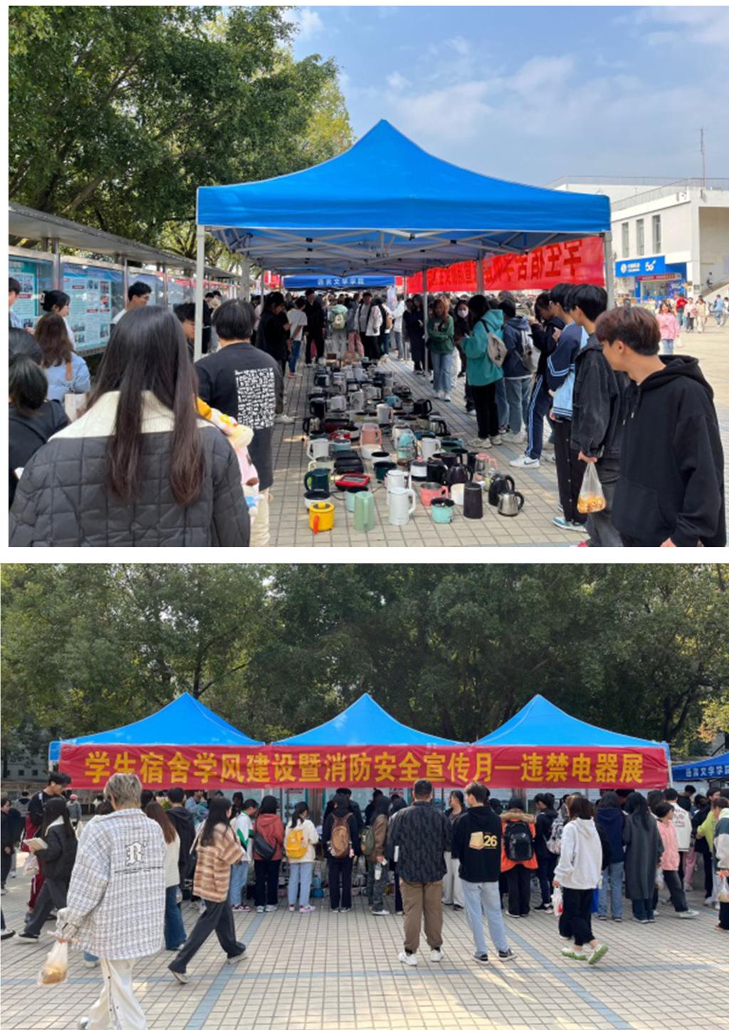活动四:在119消防安全日,开展了违禁电器展活动,展出各类大功率电器200余件,提高了广大学生对消防安全的关注和认识,为营造安全宿舍环境起到了积极的促进作用。
