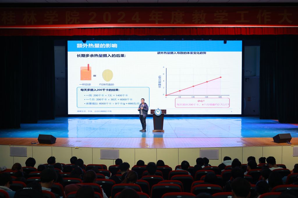 为增强大学生健康管理意识,学校于3月12日晚在弘善讲堂开展大学生健康生活专题讲座。本次活动由桂林医学院公共卫生学院营养与食品卫生学教研室副主任余启明副教授主讲,吸引全校500余名师生积极参与。