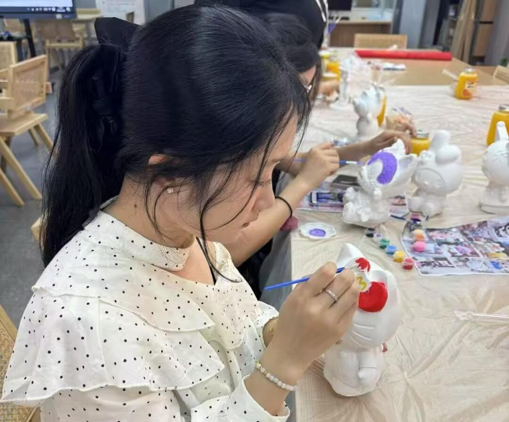 活动伊始,成员们欢聚一堂,通过听音乐抢凳子游戏环节,迅速拉近了成员间的距离。大家伴随着音符的跳动,步伐移动,让原本陌生的面孔逐渐熟悉起来,现场气氛迅速升温。“抢凳子”游戏环节不仅体现了成员们反应的迅速,更让大家在激动愉快的互动中打破了初见的拘谨和隔阂,为后续的团队合作奠定了良好的基础。随后,在琳琅满目的石膏娃娃中“涂”个开心,紧接着手持画笔,将内心的情绪与色彩交融,在涂鸦中挣脱压力的枷锁,让紧绷的神经逐渐舒缓。活动接近尾声时,成员们围坐在一起,分享自己在素拓活动中的收获与自己的色彩之娃。成员们纷纷表示,通过这次活动,不仅锻炼了自己的身体素质和心理素质,更深刻体会到了团队合作的重要性。在面对挑战时,团队成员之间的相互支持、相互鼓励,让大家感受到了集体的温暖与力量。