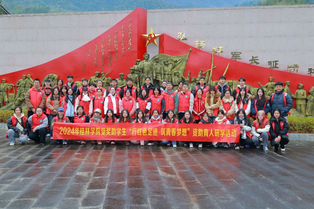 为进一步引导青年学生传承红色基因、赓续革命精神,加强受奖助学生的理想信念教育,厚植爱国主义情怀,促进受奖助学生的全面发展,11月29日至12月1日,我校组织部分受奖助的学生前往桂林资源县和龙胜县参加为期3天的“行红色足迹,筑青春梦想”资助育人研学活动。