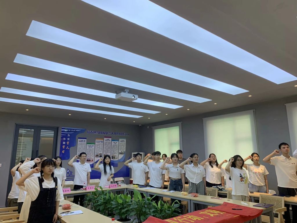 6月20日下午,理工学院学生党支部联合学生社区党支部在“一站式”学生社区辅导员工作室举办“党旗领航·初心向党 笃行致远”党日活动暨毕业生党员离校教育活动。理工学院党总支纪检委员李勇刚、学生党支部书记王少鹏、社区学生党支部书记黎金丽和全体学生党员参加活动。