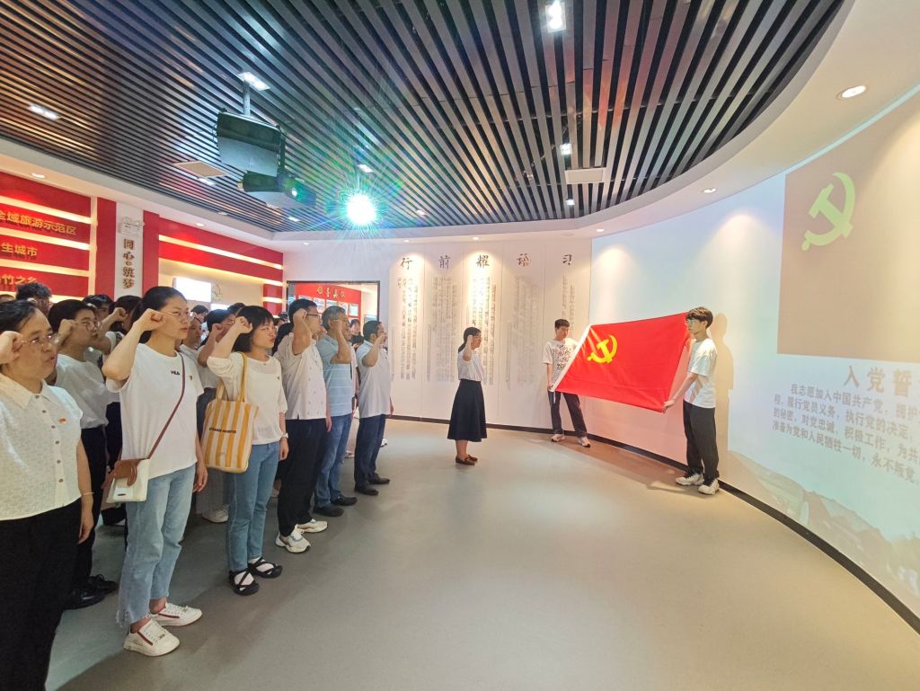 参观结束后,党总支书记张丽带领全体党员重温入党誓词并作活动总结。她表示,党员同志要坚定理想信念,坚守初心使命,守住底线,不越红线,筑牢防线,以严明的政治纪律和政治规矩,推进全面从严治党向纵深发展。每个党员干部要做到心有所畏、言有所戒、行有所止,不断增强政治定力、纪律定力、道德定力、抵腐定力,始终做到忠诚干净担当,永葆共产党员清正廉洁的政治本色。