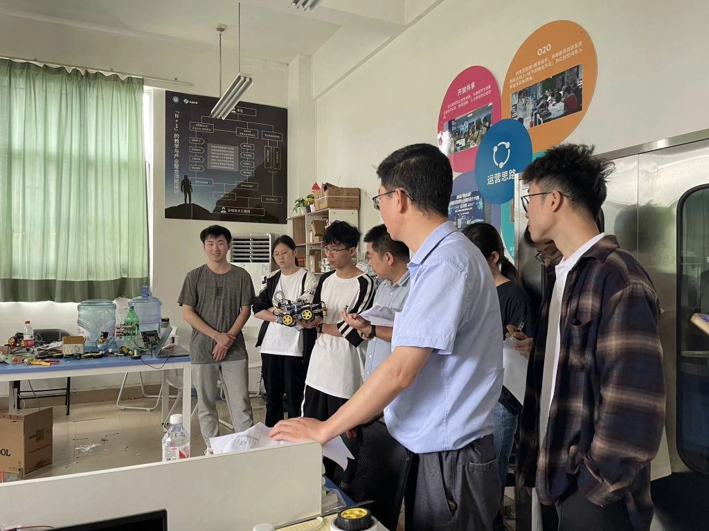 本次大赛3人一组,以团队形式展开,各参赛队伍需要自主选择竞赛命题并精心制作出作品。42支参赛队伍在现场分别对作品功能及原理进行阐述和演示,并在规定时间内上交作品设计报告。比赛过程中,评委们针对各队伍的选题、作品展示和作品设计报告等方面进行提问,为参赛队伍提供有针对性的指导和建议,旨在引导同学们深入思考,帮助同学们更好地掌握电子技术的应用,提高作品的质量和水平。