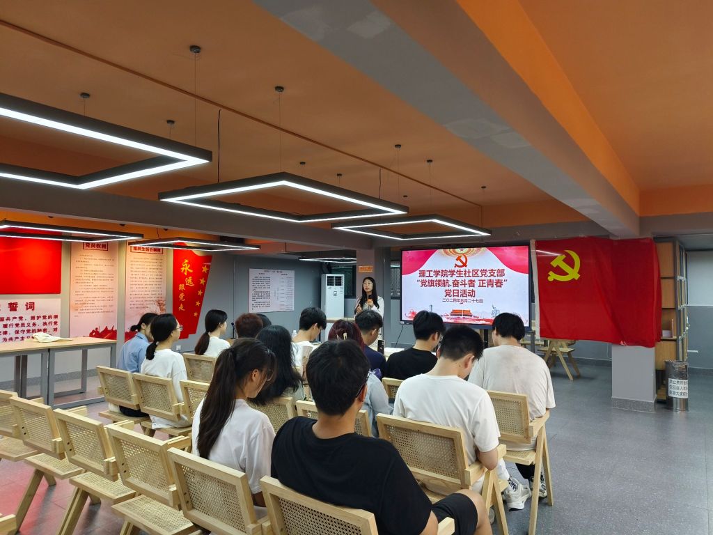 理工学院学生社区党支部于5月27日在“一站式”学生社区党团活动中心顺利举办“党旗领航 奋斗者 正青春”主题党日活动。支部书记黎金丽、学生党员、本学期发展对象参与本次活动。