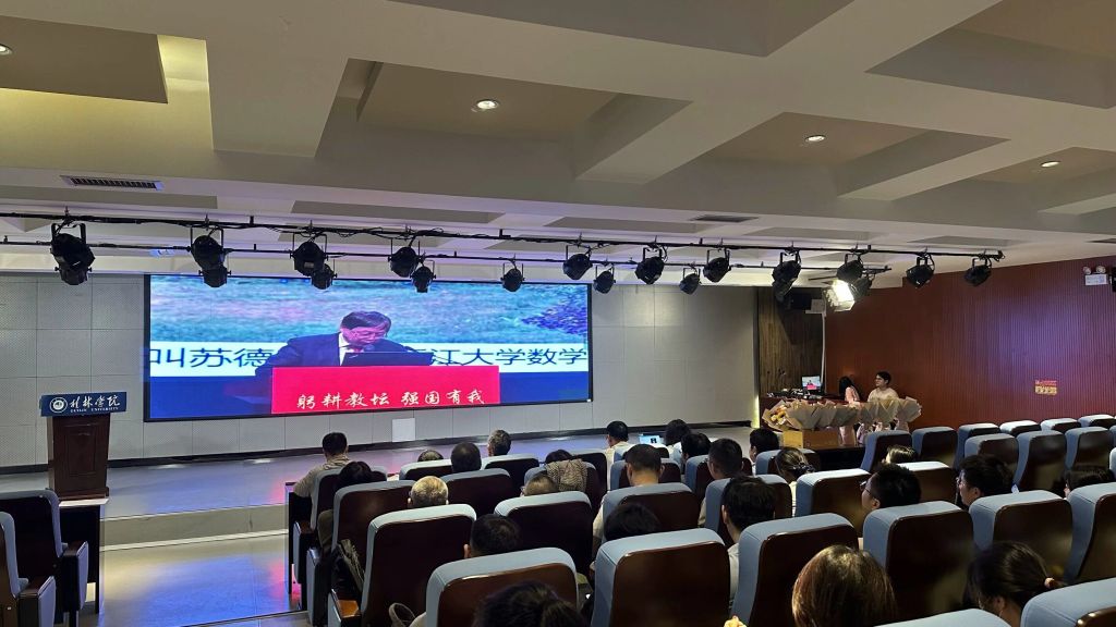 会上,全体老师共同学习观看了全国优秀教师代表“教育家精神”2024年巡回宣讲报告会中浙江大学数学科学学院苏德矿教授《心中有学生,处处是课堂》的精彩宣讲。苏德矿教授在教学中积极改进教学方法、潜心教书育人的个人事迹是教育家精神的生动诠释,他在《微积分》中用数学语言来激励和教育学生的方法更是理工科教师开展课程思政的优秀示范,让与会老师深受启发。