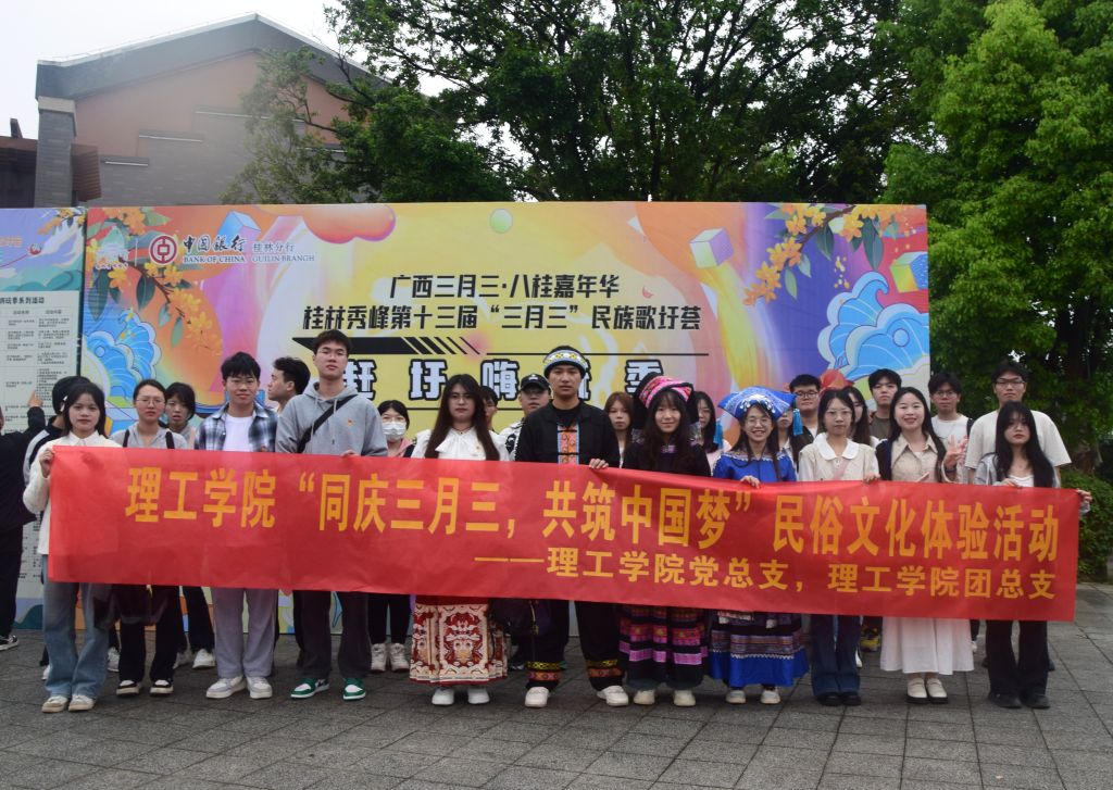 为了加强学生对民族优秀传统文化的了解,传承优秀传统文化,铸牢中华民族共同体意识,近日,理工学院党总支组织师生代表前往桂林市秀峰区桂花公社景区开展“三月三”民俗文化体验活动。