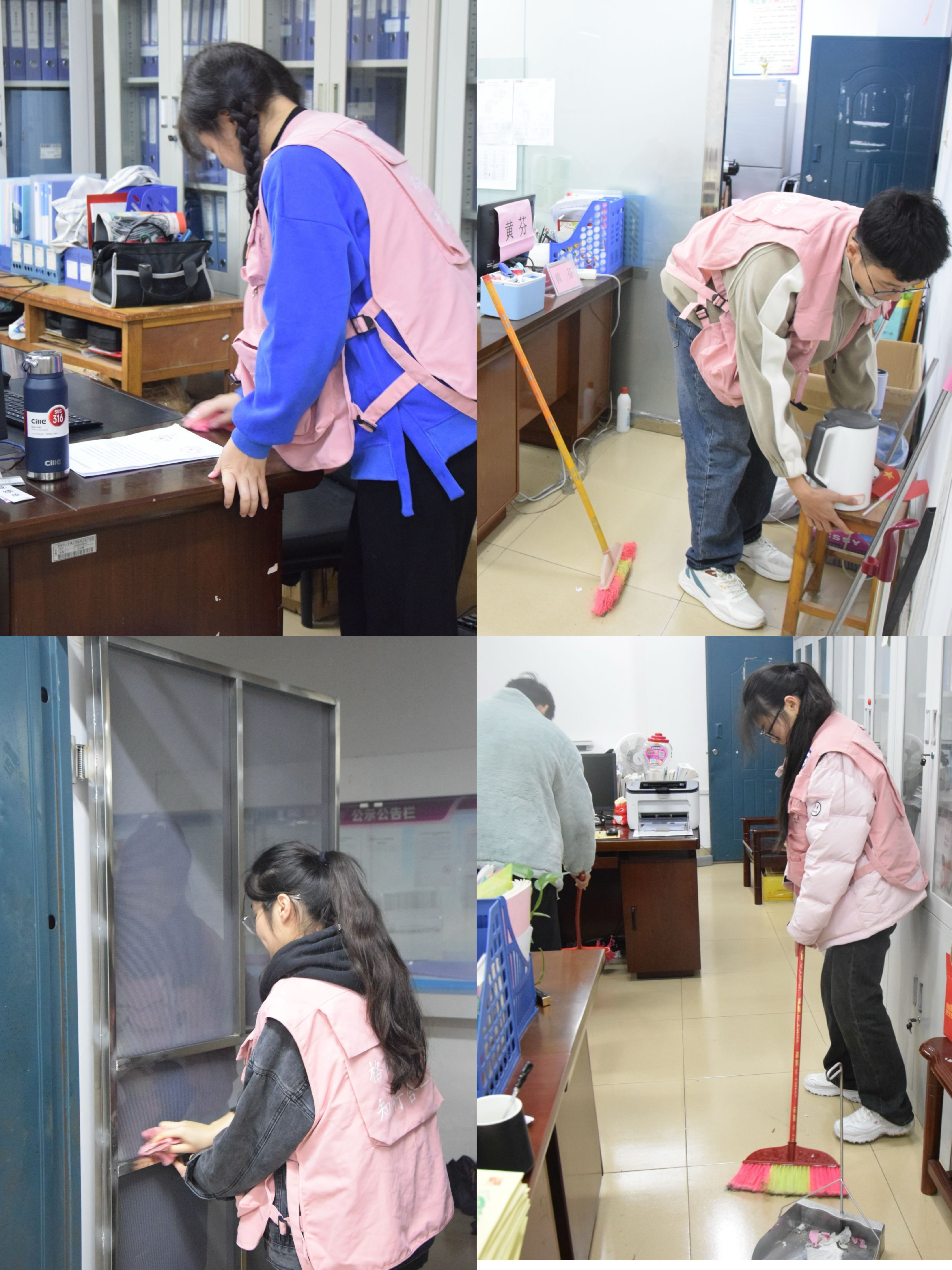 志愿者们清洁办公室