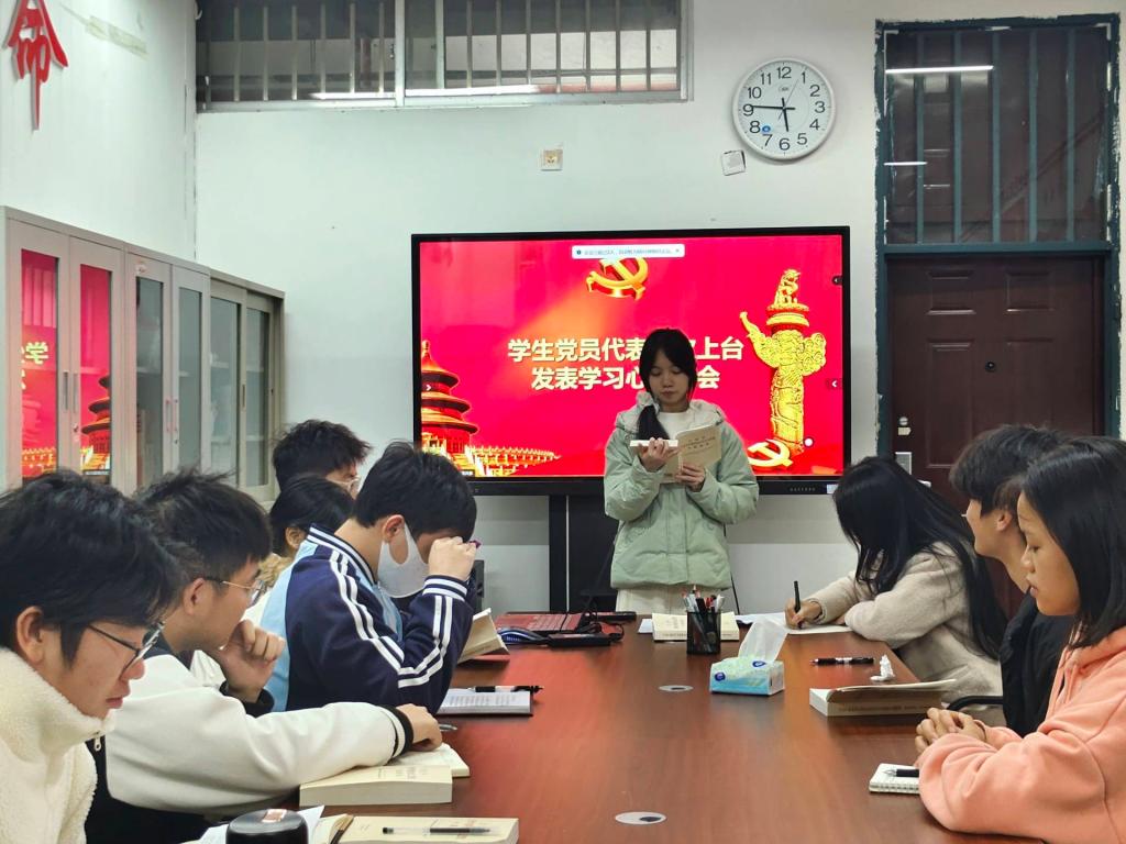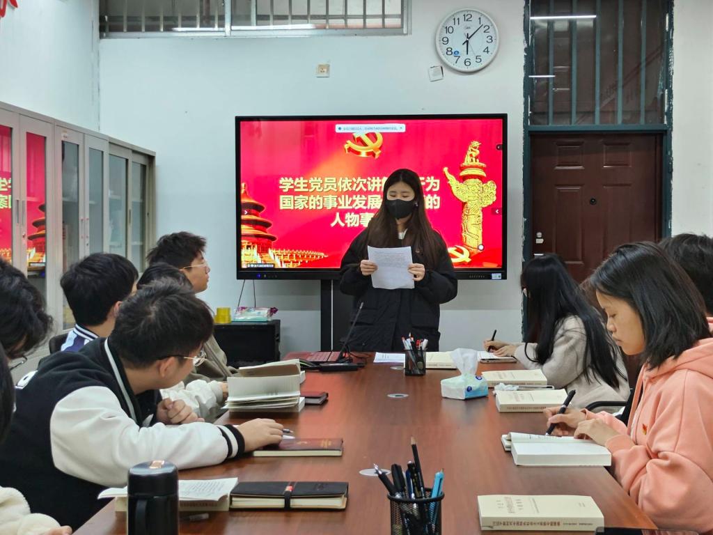 2021级大数据专业黄醒和2021级软工专业覃田杯两位学生党员依次发表了学习心得体会。活动中,2021级软工专业黄军胜讲解了为国家事业发展谋新篇的人物故事,他谈到钱学森把个人的命运与家国命运紧密相连实现了个人价值,激励着大学生要树立远大的理想信念,将个人发展与中国梦相结合,努力学习实现个人价值。2022级大数据专升本的凌兰花分享了袁隆平为杂交水稻科研事业奋斗终生,为世界人类造福祉的光辉事迹,激励学生党员要立足个人岗位为人民谋幸福。
