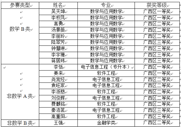 第十五届全国大学生数学竞赛(初赛)桂林学院学子获奖名单表