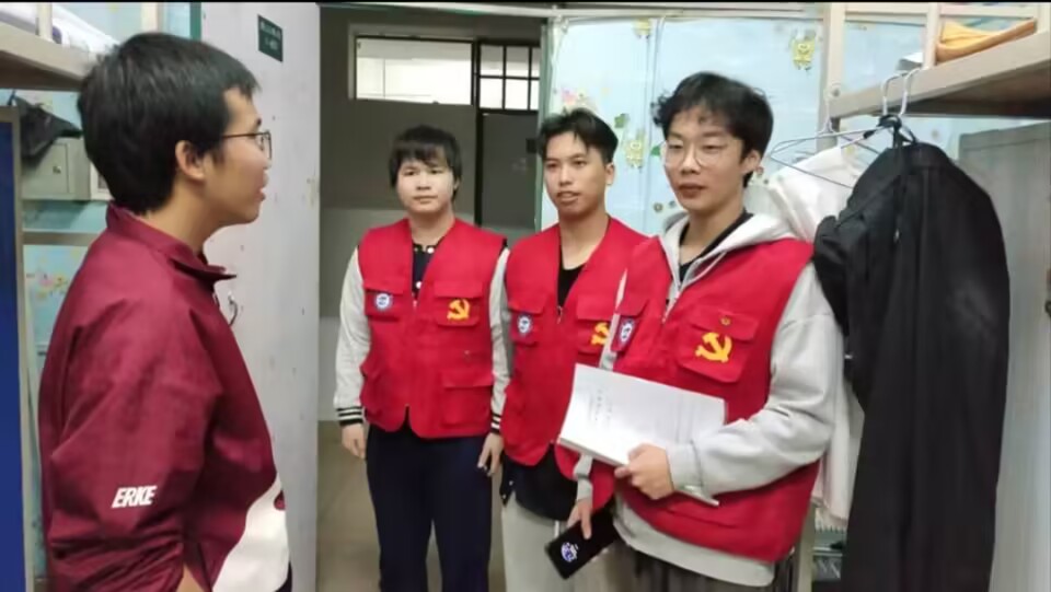 在走访过程中,学生党员与新生亲切交流,深入关心学生的日常生活,普及校园安全知识并提醒学生要加强安全防范意识,谨防上当受骗。走访期间2023级数学专业新生黄海鸥向2021级数学专业学生党员马卓询问如何准备期末考试,马卓从日常认真听课、课后加强练习、期末重点复习等几个方面做出解答,并告知其除了注重专业课程的学习之外,也要加强其他方面的提升,鼓励其积极参加各类竞赛。2021级电信专业学生党员农霖在走访过程中不仅解答了新生所提问题,并向新生宣传讲解了《中国共产党章程》,介绍了党员义务、党员权利、党的性质以及党的二十大相关知识,鼓励新生深入了解党,提高思想觉悟,积极向党组织靠拢。