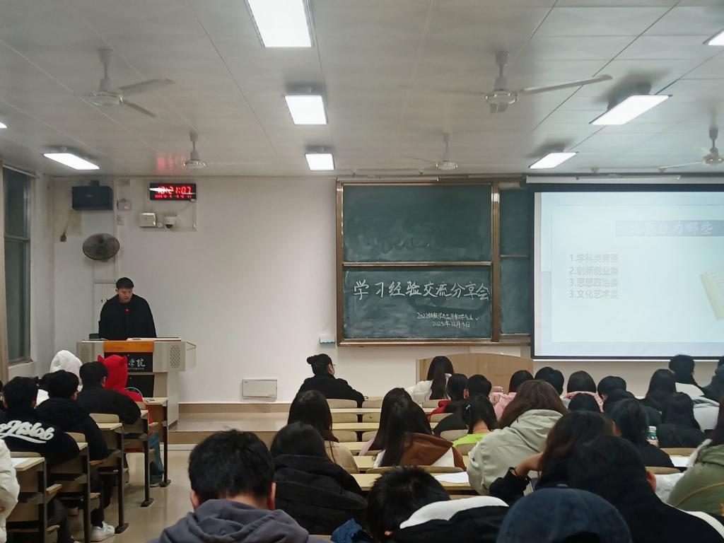 12月3日,理工学院学生党支部、学生社区党支部于至善楼1411教室举办主题为“朋辈相伴·与党同行”的学习经验交流分享会。2022级辅导员谢海云,2021级数学专业学生党员陆诗欣、马卓及2022级数学与应用数学专业全体同学参加学习经验交流会。