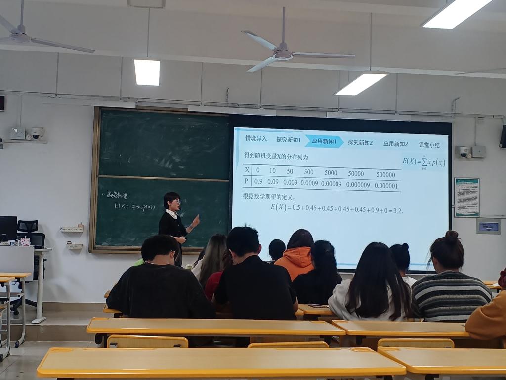 本次磨课内容是《概率统计》第二章第2节“随机变量的数学期望”,课程由公共数学教研部教师吴小莉老师主讲,授课班级是理工学院2022级数学与应用数学专业2班。吴老师使用前后呼应的方式引出数学期望的定义,利用同学们熟悉的生活案例引发同学们思考,并利用数学期望的定义解释了一些政策制定的依据,充分展示数学来源于生活,并作用于生活。同学们在课堂中不仅学习了科学知识,也学习了知识的作用及做人的道理。教师在整个课堂的教学内容和教学安排上把握得当,达到了预期的教学效果和目标。