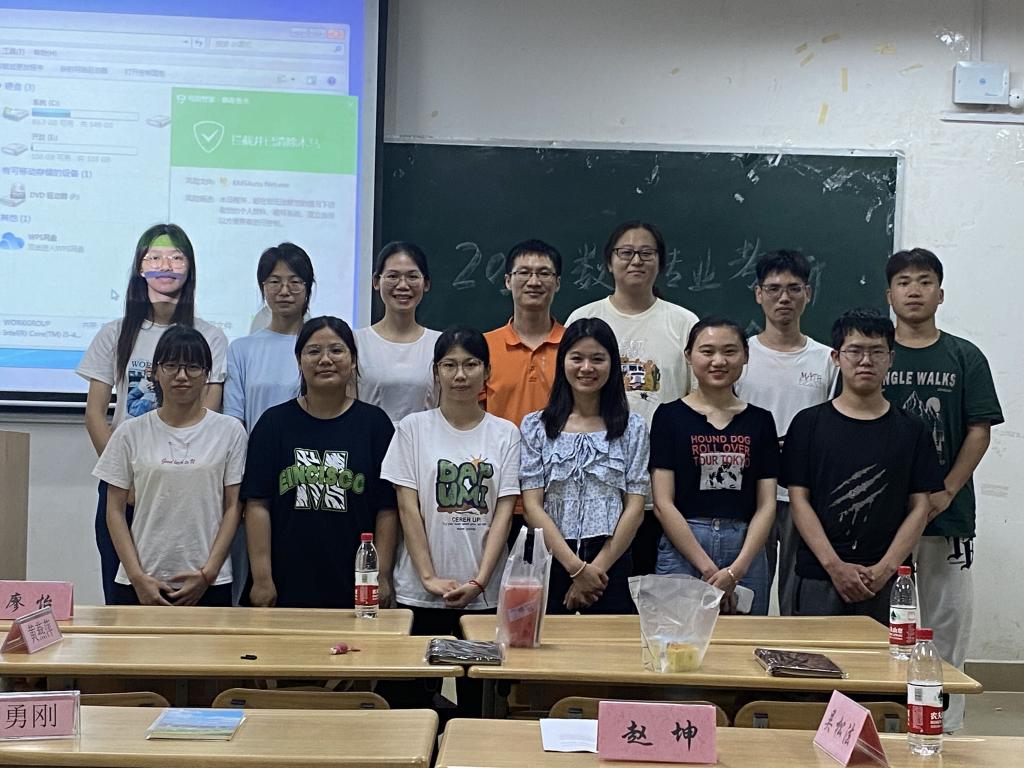 6月6日晚,我数学与应用数学专业在1308教室开展考研动员大会。本次动员会邀请到了研究生校友2017级赵坤、2018级廖怡来校,以及2019级考上研究生的吴松法、杨业梅进行经验分享。2020级数学有考研意向的同学、数学教育教研室主任李勇刚老师、专业考研负责人黄燕萍老师共同参加了本次会议。