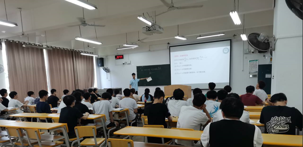 本次公开课由应用数学教研室青年教师吴开迅老师主讲,讲解内容是《高等数学》第十二章第2节的“正项级数敛散性判别法”,授课班级是理工学院2022级电子信息工程专业2班。吴老师通过严谨的证明,证明了正项级数的比较判别法、比值判别法以及根植判别法,并通过例题引导学生掌握了三类判别法的应用方法。整个课堂,教师教学内容和时间结合紧凑,学生练习效果好,总体来说达到了预期的教学目标。