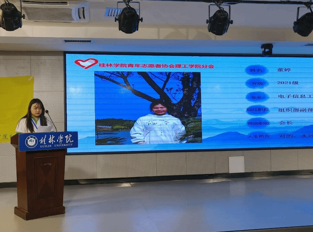 大会开始前,各部门各司其职,为本次会议作了充分准备,确保换届顺利进行。会议正式开始,在主持人介绍到场来宾,齐唱《青年志愿者之歌》后,各部门竞选人员依次上台发言,随后由指导老师、青年志愿者协会各位代表以及青年志愿者协会理工分会会长团成员对竞选者进行提问。竞选结束,工作人员收集选票,以便后续工作的开展。最后,青年志愿者协会理工分会会长毛静丽对此次换届大会进行总结,并对成员寄予厚望。