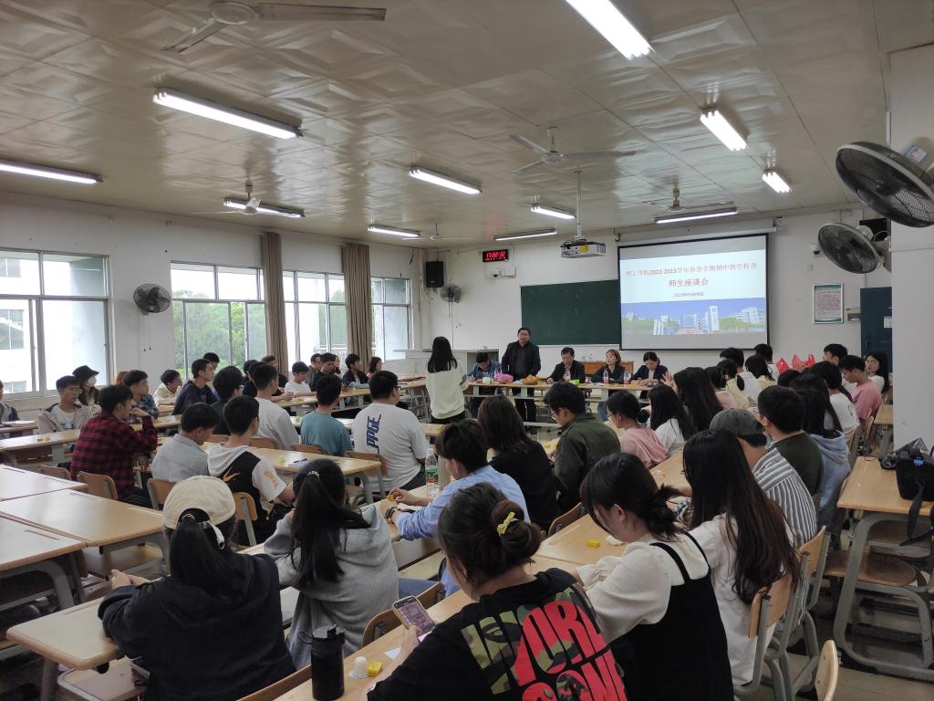 为深入贯彻“以学生为中心”的教育理念,扎实推进期中教学检查工作,理工学院于5月8日下午在至善楼1410教室举行了2022-2023学年春季学期期中教学检查师生座谈会。理工学院院长李红波、副院长刘亮龙、党总支副书记刘显林、教学秘书周芸伊、王凌璐以及各专业、班级的学习委员代表参加座谈会。