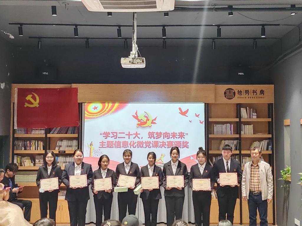 此次活动以全面学习贯彻党的二十大精神,坚定拥护“两个确立”、坚决做到“两个维护”,自信自强、守正创新,勇毅前行为内容开展,入围决赛的选手由赛前抽签依次上台展示作品,在微党课作品展示中,大家充分利用新媒体手段,结合自身专业优势,融入自我学习经历,切实增强了微党课的吸引力和实效性。各微视频选手的作品,同样以扎实的专业功底、蓬勃的青春朝力、坚定的理想信念和敏锐的时代感知,展现着他们“学习二十大,筑梦向未来”的使命担当。其中2020级数据科学与大数据技术专业龙源同志微视频的作品《征途漫漫,惟有奋斗》深情讲述中国在进步发展中筚路蓝缕、艰苦奋斗的生动故事,作品主题鲜明,结构严谨,巧用信息化应用技能,深刻展现新时代我国取得的辉煌成就和发生的可喜变化,在场师生深受感染鼓舞,赢得现场嘉宾的一致好评,荣获微视频创作一等奖。