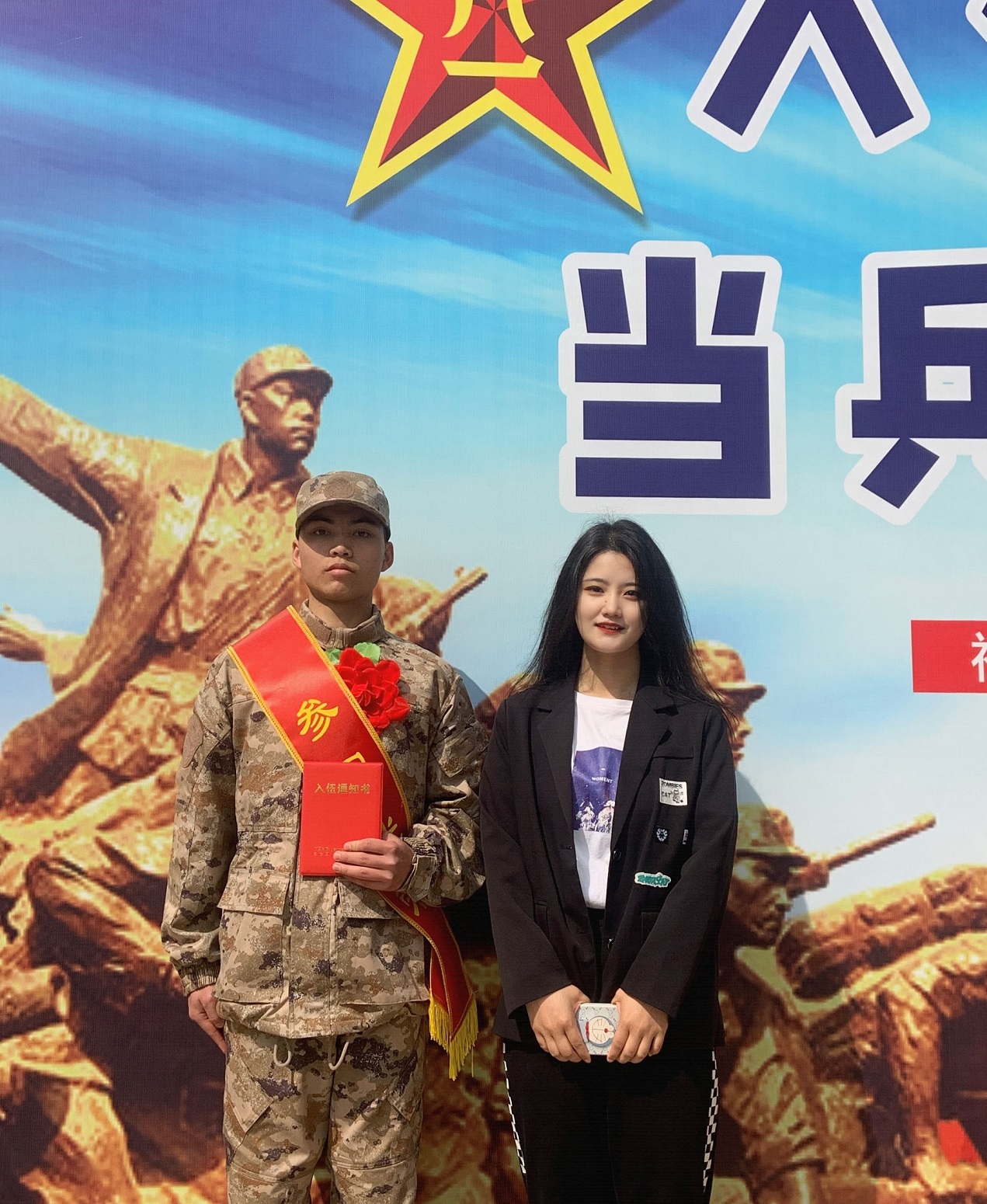 最后,辅导员王少鹏希望入伍新兵能够珍惜荣誉,牢记使命,投身军营,积极锻炼,建功立业。也希望更多志气青年能够为建设国防贡献自己的一份力量!