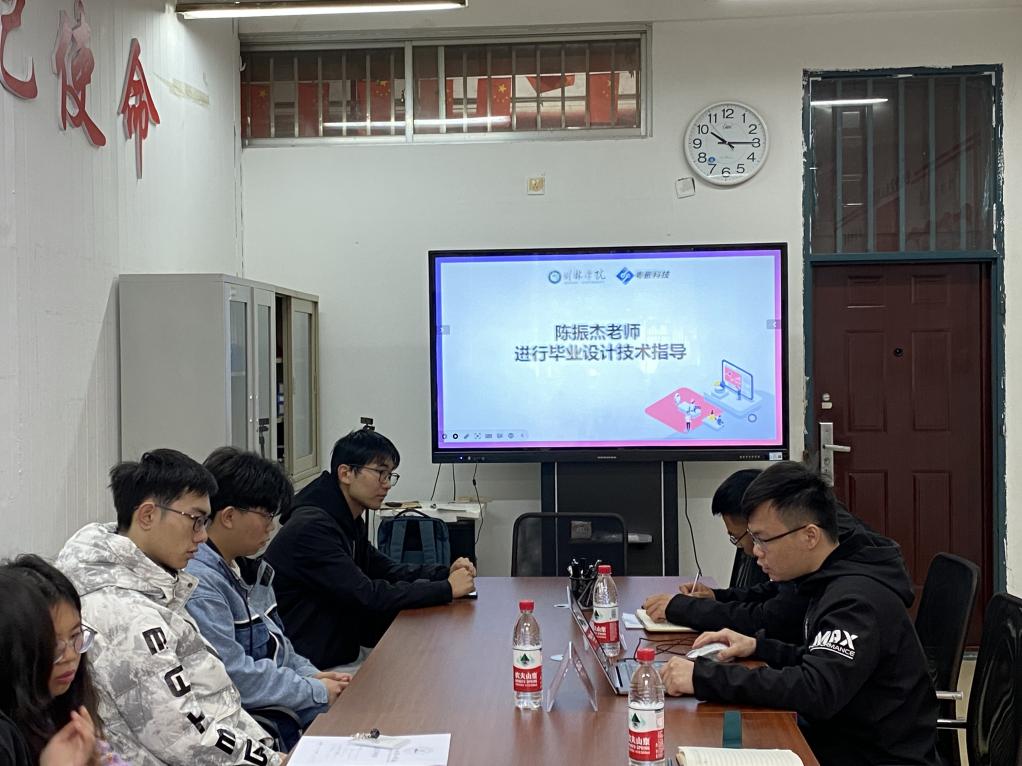 图:粤嵌产业学院陈振杰老师进行毕业设计指导