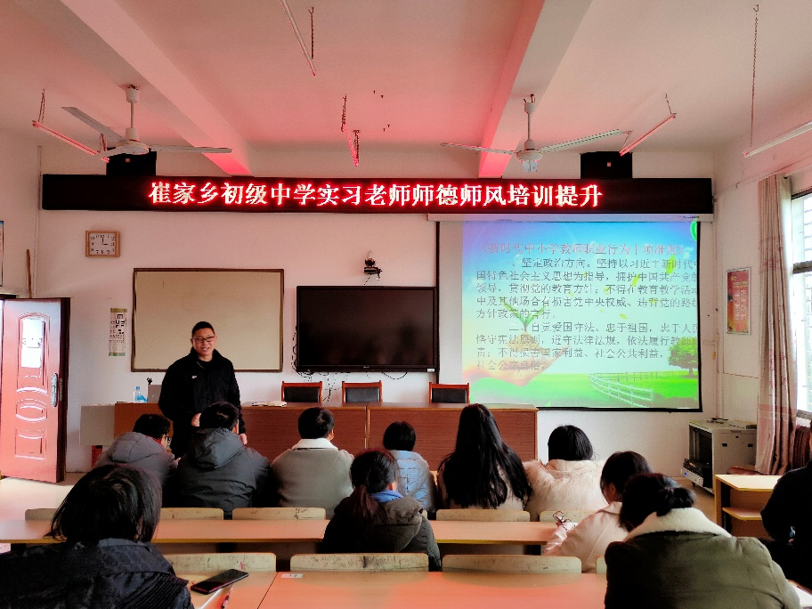为了提升数学与应用数学专业实习生的教师职业道德理论修养,12月6日下午,我院邀请兴安县崔家乡初级中学校长刘春桥为2019级数学与应用数学专业12名实习生开展了一场以“学高为师,身正为范”为主题的讲座。