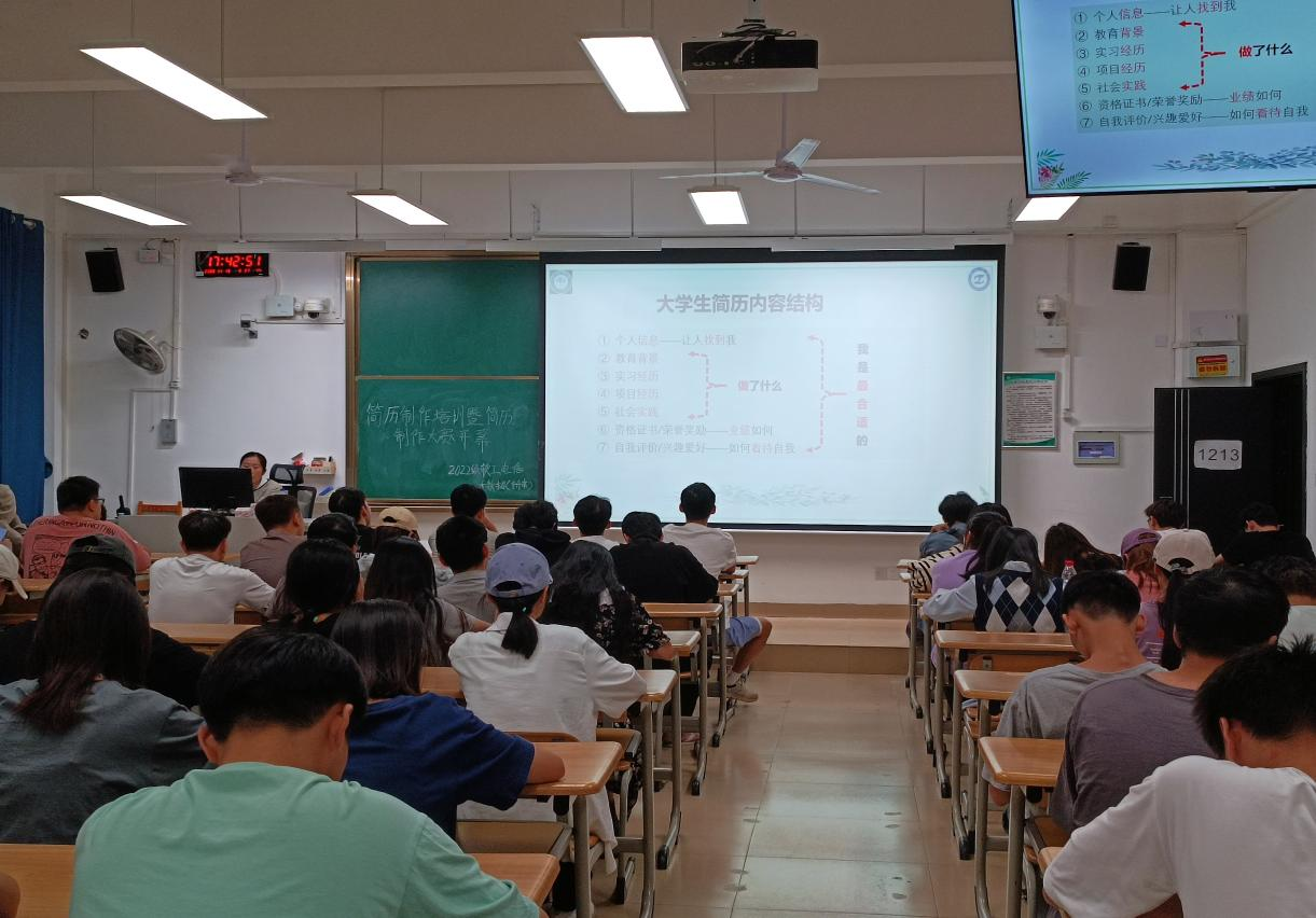 培训从两大方面展开:一是强调简历对于将来找工作的重要性,能帮助同学们进行阶段性总结、科学的规划未来以及提高面试的机会。明确企业或面试者想要了解的信息,在这些方面去个人突出优点,有利于提高竞争力。随后与同学们分析了疫情下严峻的就业形势,向同学们讲述简历对于求职的重要性和需要纠正的简历观。二是讲述了如何制作简历,从“简历的写作原则”、“简历内容结构”、“好简历的具体要求”三个部分向同学们讲解怎样做一份好简历,并通过身边的真实例子让同学们更好的了解个人简历的写法以及应注意的问题。在“好简历的具体要求”部分,着重介绍了“形式好”和“内容好”是作为制作好简历的具体要求,并把明确的求职意向作为“内容好”方面的重点。活动最后提醒同学们在制作简历时要规避自己的劣势,充分描述优势,提高自己的竞争力。