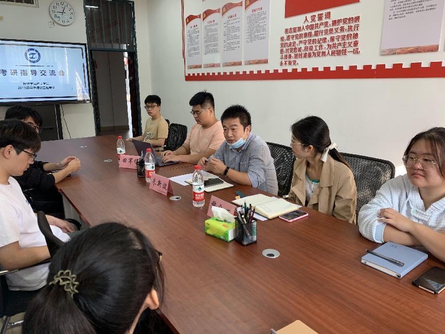 为了帮助同学们解决在考研中遇到的困难,增强同学们在考研冲刺阶段的信心,11月11日上午,我院2019级电子信息工程专业在学院会议室开展考研指导交流会,本次考研指导交流会到场嘉宾有学院电子信息工程专业教研室主任朱新波老师、广西师范大学计算机科学与信息工程学院田军伟学长,2019级电子信息工程专业考研同学与学院2020级其他专业有考研意向的学弟学妹参加了本次活动。本次交流会由学院2019级辅导员黎金丽老师主持。