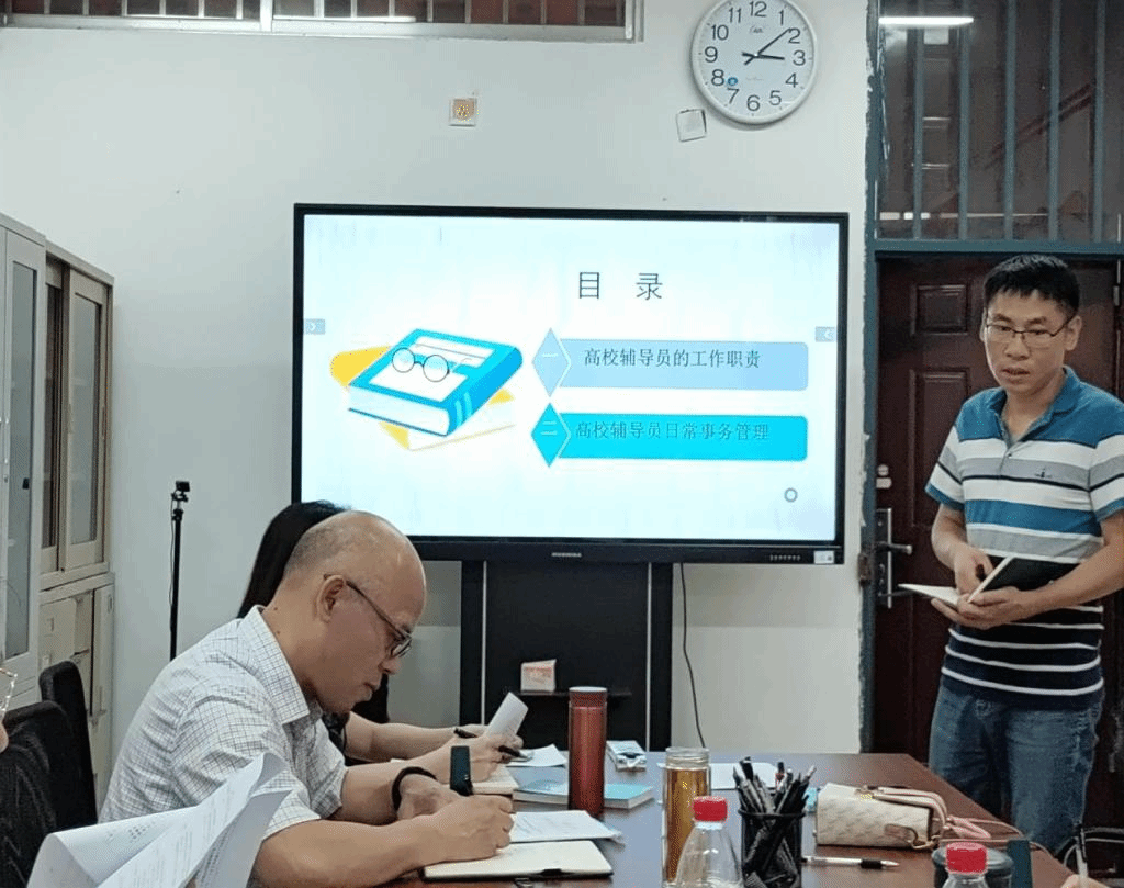 为进一步加强我院辅导员队伍建设,提升辅导员政治素养、业务水平和综合素质,9月9日下午,在我院会议室,组织开展新入职辅导员岗前培训班第二讲专题培训活动,本次活动由党总支副书记刘显林主讲,辅导员蓝贤斯主持。