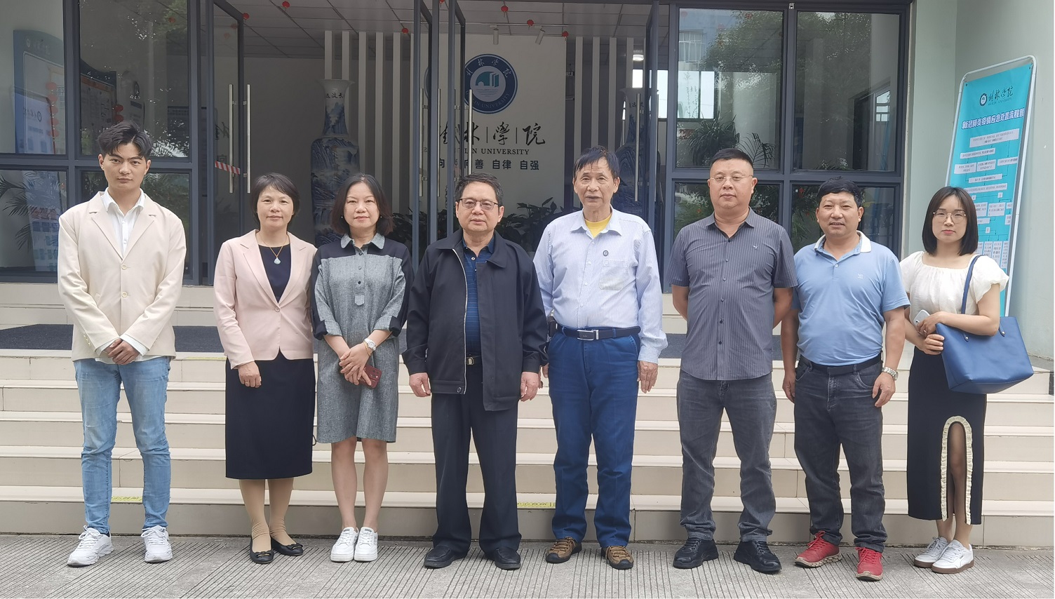 图:桂林学院财务总监祝芸芸(左三)与广西翰特信息产业股份有限公司人员合影