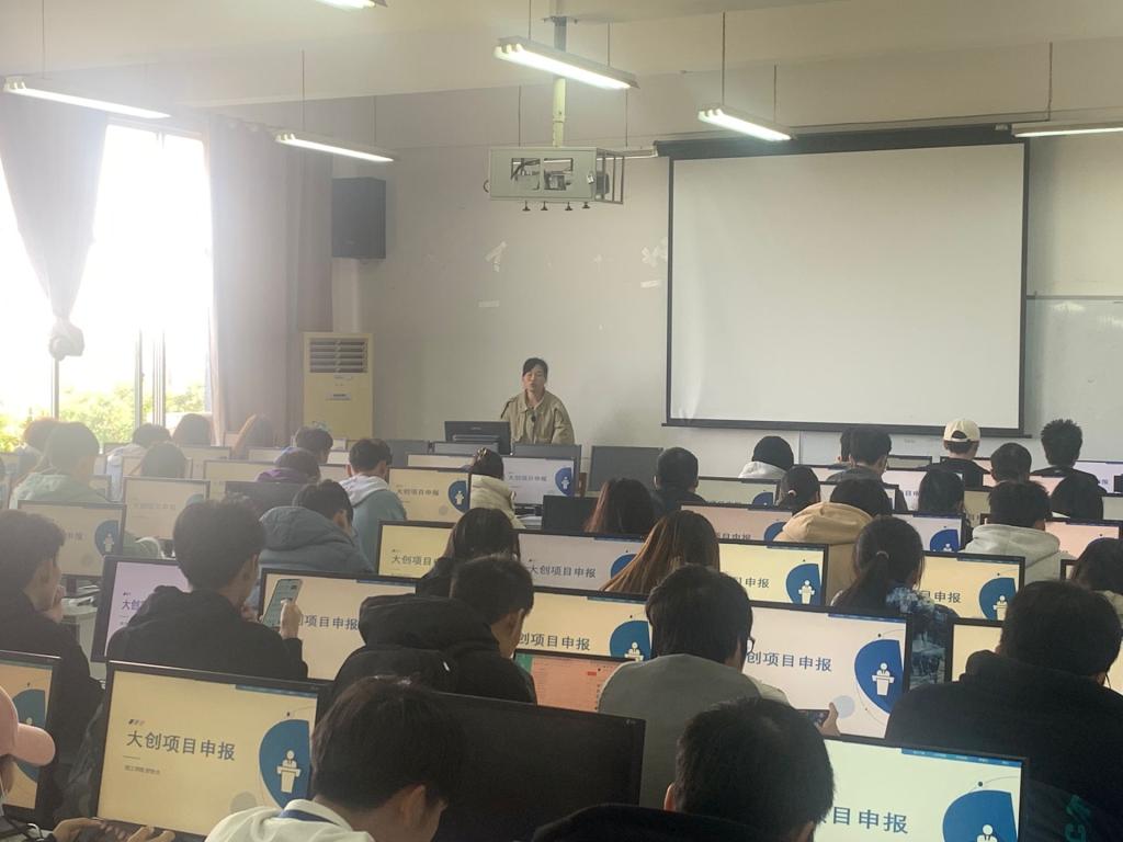 肖建明则从了解创新创业大赛、大赛的进程以及大学生如何备赛三个方面讲解,他表明创新创业大赛的目的是敢想敢干,并鼓励学生积极参加,将自身所学专业知识用于实践。如何更深入的了解大赛,他表示大赛发展是与时俱进的,我们要以发展的观点去分析和了解大赛,并建议学生去分析大赛的历史,了解现今的社会经济、工业技术、国家发展、国内外形势以及党和国家的政策导向,这样才能抓住当今痛点从而加以创新。创意从何而来,他指出可以去翻阅往届获奖作品以及从网络上查询有关创新创业大赛的相关视频,同时他将自己指导并获奖的作品分享给学生。