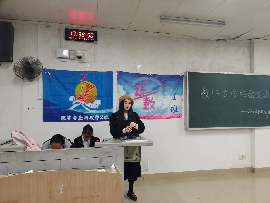 为帮助学生掌握备考方法,营造良好的学习氛围,提升教师资格证的考试通过率,12月12日晚,理工学院在至善楼1411教室举办教师资格证考试经验交流会。交流会邀请了2018级数学与应用数学专业代天凤、廖怡、杨雨龙,2019级数学与应用数学专业沈怡婷、罗晓欣五位同学分享考证经验,2020级数学与应用数学专业全体学生参加了交流会,交流会由辅导员蓝贤斯主持。