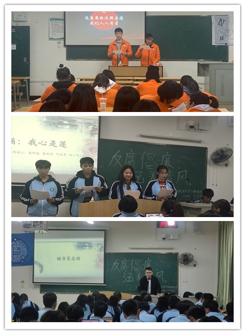 王冕曾写道:“不要人夸好颜色,只留清气满乾坤”。正值第十八个国际反腐败日之际,为营造风清气正的良好氛围,理工学院各班级于12月5日晚开展了廉洁教育主题班会。