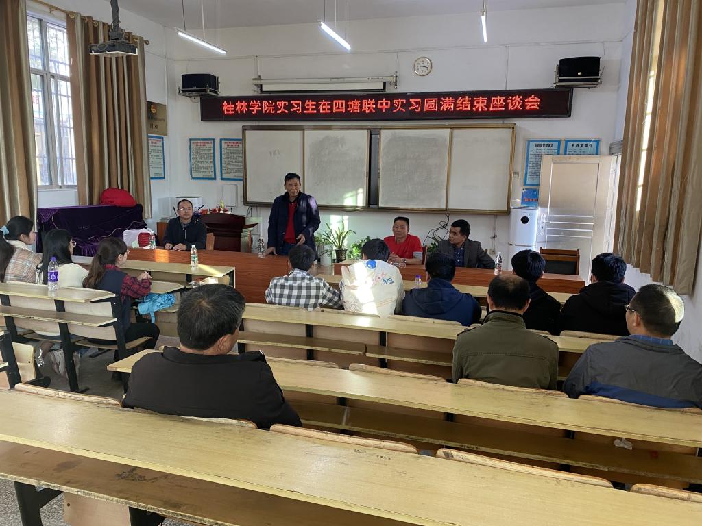 会上,四塘联中校长周国胜肯定了实习生在实习期间认真配合并完成各项任务的态度,感谢理工学院为四塘联中学注入年轻鲜活的力量,赞扬了实习生虚心求学,不怕苦,积极工作的实习热情,并送给实习生美好的祝福。