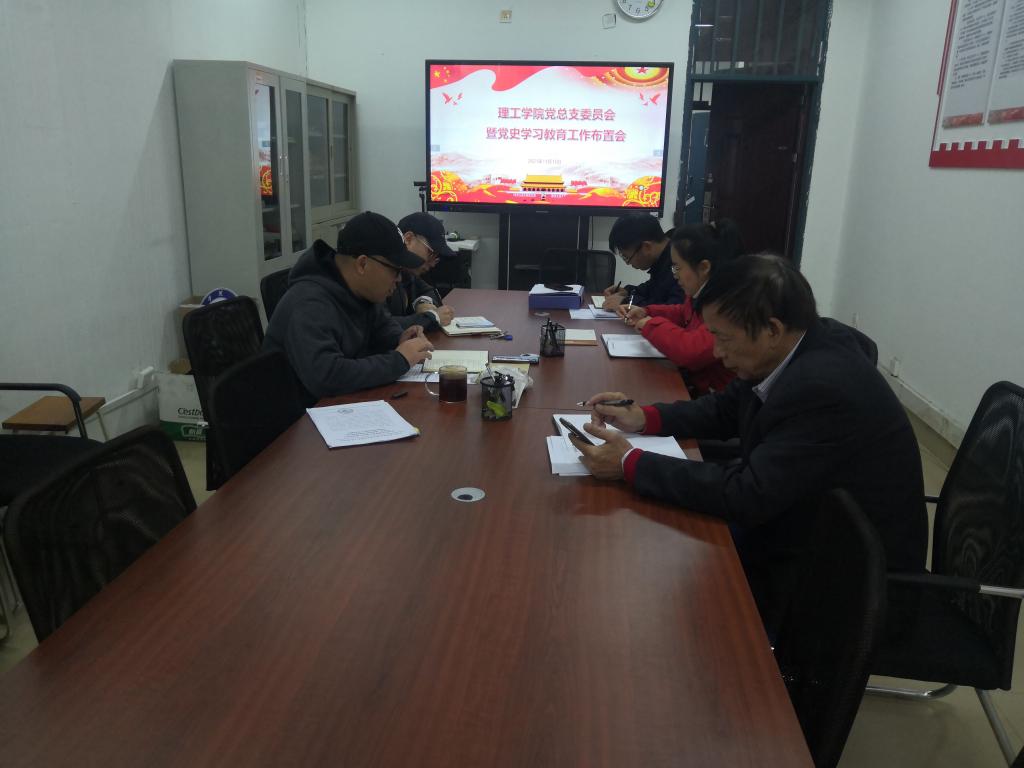 11月15日上午,理工学院在党员活动室召开党总支委员会暨党史学习教育工作布置会,全体党总支委员参加了会议。