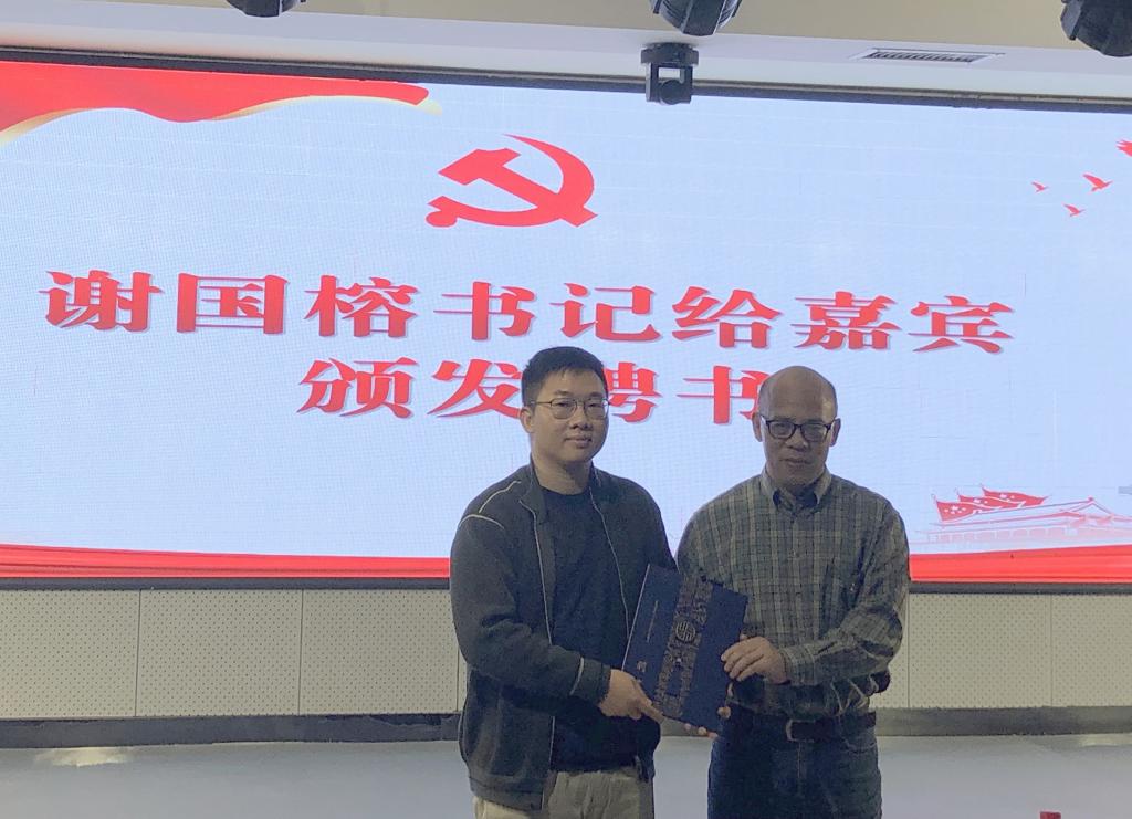 图:党总支书记谢国榕为嘉宾谢天宇颁发聘书