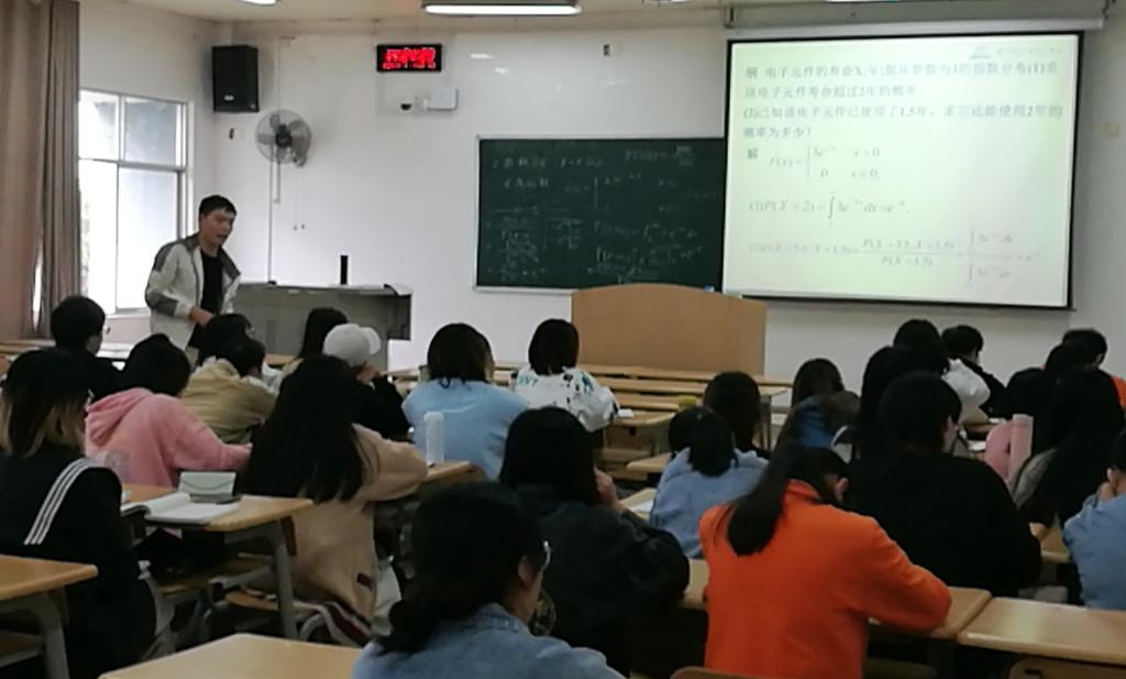 11月1日下午,文鹏老师主讲《概率论与数理统计》的“指数分布和正态分布”,授课对象为2020级旅游管理专业。文老师从指数分布的密度函数,逐步推导了分布函数和相应事件的概率,然后通过例子的形式引导学生对于指数分布无记忆性质的思考,再结合性质引导学生思考指数分布的应用;对于正态分布,文老师从一个测量问题出发引出了正态分布的定义,既增强了学生对正态分布的理解,又体现了课程思政的元素。
