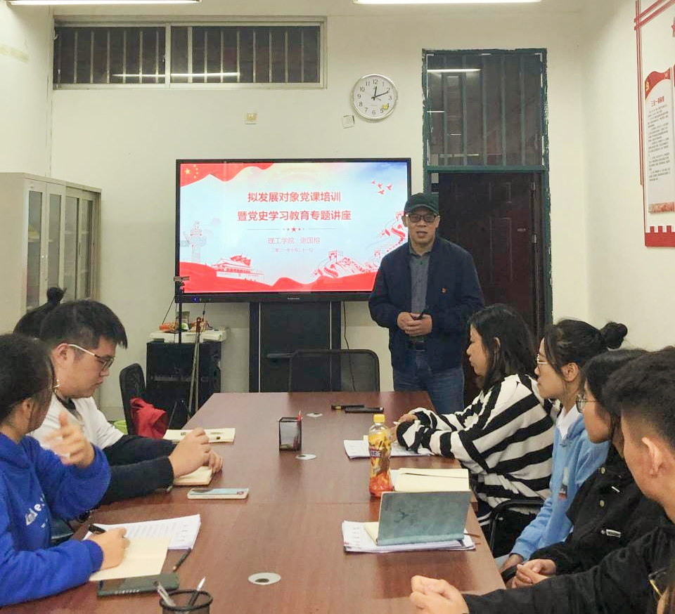 为深入开展党史学习教育,切实提高发展对象的理论水平和综合素质,严格发展党员工作程序,保障发展党员工作质量。10月21日,理工学院学生党支部开展拟发展对象党课培训暨党史学习教育专题讲座,学院党总支书记谢国榕应邀授课,拟发展对象和各年级党建信息员参加本次活动。