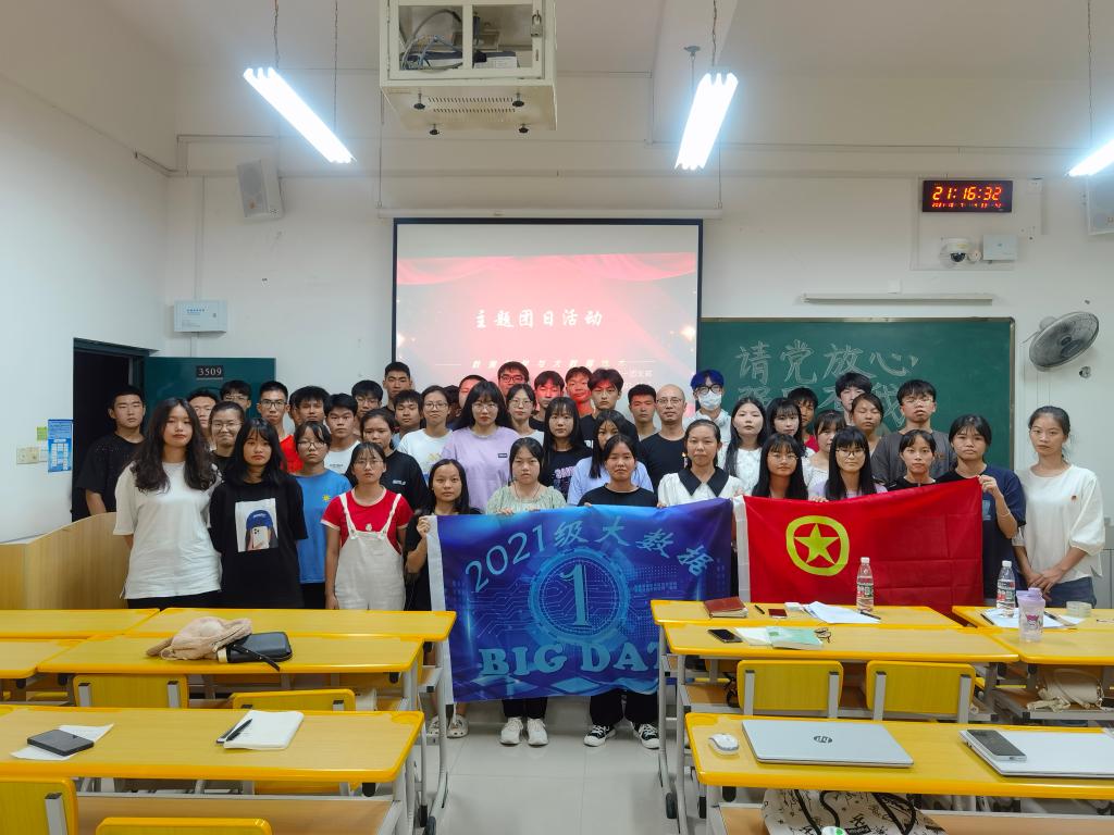 为庆祝中国共产党成立100周年,在国庆之际进一步引导广大青年学子传承红色基因、坚定理想信念、弘扬爱国精神、展现青春风貌,2021级数据科学与大数据技术第一团支部于10月7日晚上在至善楼3509教室召开“请党放心,强国有我”主题团日活动,参加活动的有辅导员金云亮老师、考评干部和2021级数据科学与大数据技术第一团支部全体成员。