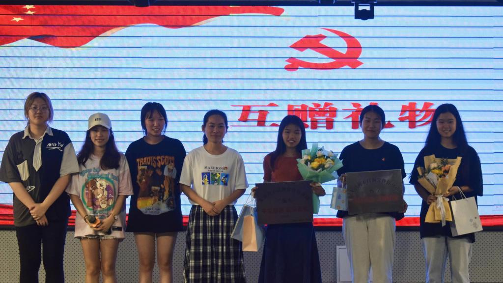 活动开始,由毕业生党员代表宣读“我为支部献一计”建言献策,此环节是前期广泛听取收集同学们对党支部工作的意见和建议,他们希望学生支部在理论学习与实践活动、党小组互动交流、专业特色与思想教育融和等方面积极创新,提升支部凝聚力。其次是毕业班党员寄语与礼物互赠活动,刘显林赠与全体毕业生党员寄语,他希望2021届毕业生党员站好最后一班岗,常怀感恩之心、常存回报之意,不忘师恩、情系母校、报答父母、服务人民、报效国家,积极发挥党员先锋模范作用,带领全体毕业生文明离校。另外党员互赠礼物环节集中体现了毕业班党员与非毕业党员之间深深情谊,她们相互诉说衷肠,表达彼此的不舍与祝愿。随后,学生党支部书记刘显林同志为吕瑜瑜、赵冰冰、王榕等3人颁发优秀党建信息员荣誉证书,党总支书记谢国榕同志为毕业班党建信息员杨宁、兰振玉颁发聘书。接着刘显林同志带领大家重温入党誓词。