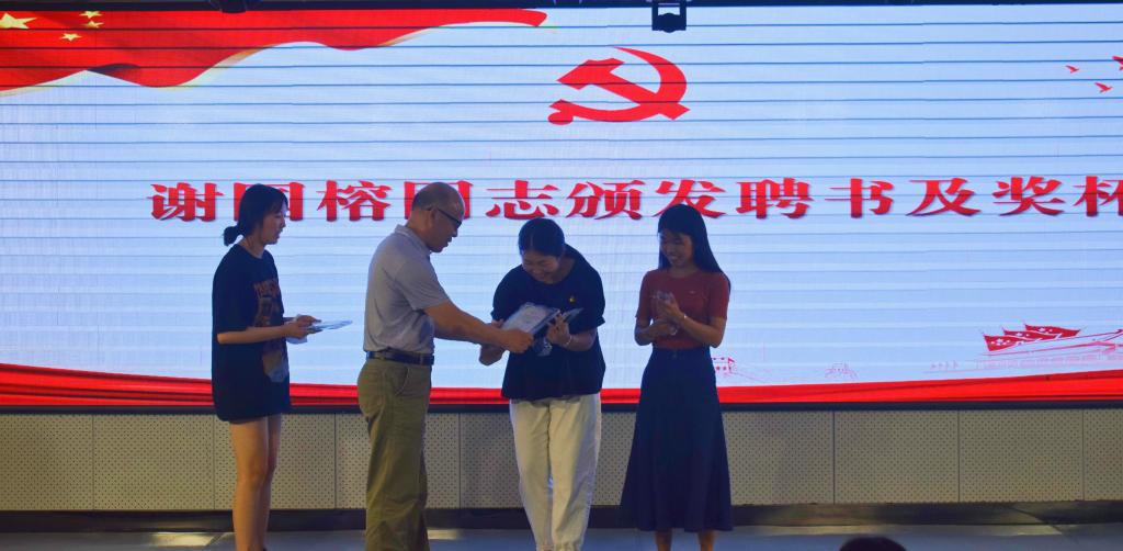 图:谢国榕书记为毕业班党建信息员杨宁、兰振玉颁发聘书