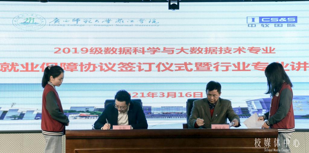 3月16上午,我院于至善讲堂举行了理工学院/中软国际大数据产业学院2019级数据科学与大数据技术专业就业保障协议签订仪式暨行业专业讲座,中软国际教育科技集团华南区总经理张航、副总经理汪建新、深度合作运营经理卢钊勤,理工学院院长林庆南、党总支书记谢国榕、副院长刘亮龙、党总支副书记金云亮、教师代表以及2019级数据科学与大数据技术专业全体同学参加了本次开班仪式。