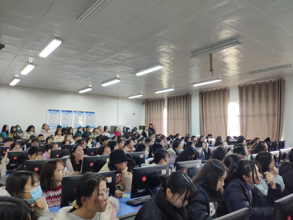 宣讲会由理工学院计算机类教研室廖媛媛老师从“为什么要参加全国计算机等级考试?”“如何备考?”等内容展开详细介绍;接着,考点负责人与主讲老师针对学生在备考中遇到的问题进行答疑解惑;宣讲会的最后为需要报考的学生开放机房并进行现场报考指导。