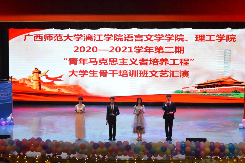 为促进我院青马班成员与其他学院青马班成员之间的沟通交流,以及为青马班学员提供更广阔的学习和交流机会及平台,12月14日晚,理工学院与语言文学学院于弘善讲堂联合举办第二期青马班文艺汇演。理工学院党总支书记谢国榕、团总支书记李莉、团总支副书记蓝贤斯、语言文学学院团总支书记李杨、团总支副书记黄辛津以及两个学院的第二期青马班全体成员参加本次活动。