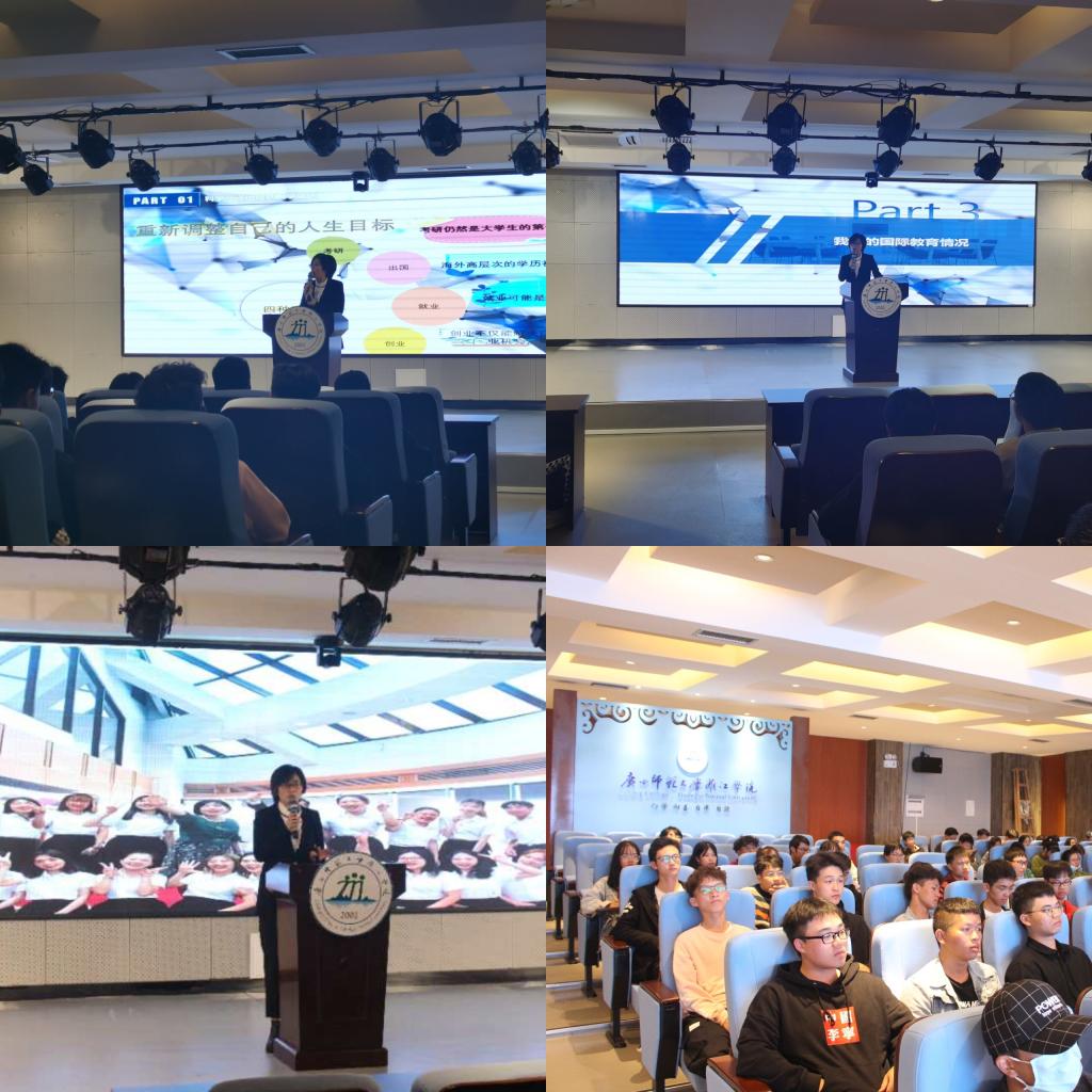 随后,邓慧玲老师详细说明了我校的国际教育情况,表达了我校对国际教育的重视,希望同学们能开阔眼界,拓宽视野,增长见识,与外国机构合作增加就业机率,呼吁同学们成为更好的自己,要舍得为自己投资,提高自己的学历,为未来就业多一个选择的机会。